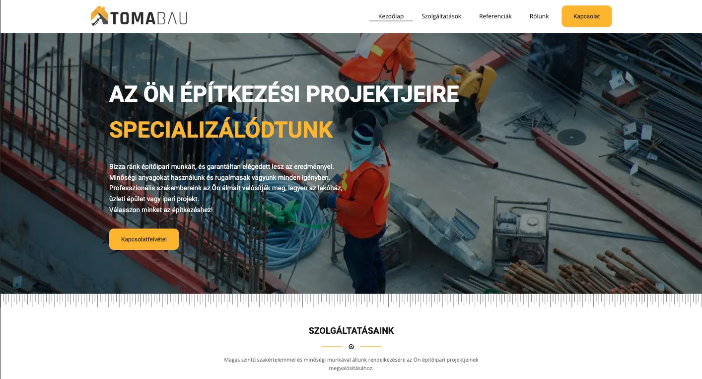 A Toma Épszig Kft. számára egy modern és felhasználóbarát weboldal kialakítása volt a cél, amely bemutatja az építőipari szolgáltatásaikat, kiemelve szakértelmüket és elkötelezettségüket a minőségi munkavégzés iránt. Az oldalnak lehetőséget kellett biztosítania a különböző célcsoportok számára – legyenek azok magánszemélyek vagy vállalkozások – a könnyű tájékozódásra és kapcsolatfelvételre.